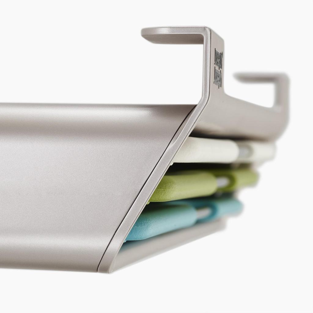 - Poseban dizajn držača za pohranu iskorištava neiskorišteni prostor ispod police, omogućujući vam da daske za rezanje pohranite dalje od radne površine, a da ih i dalje imate pri ruci.