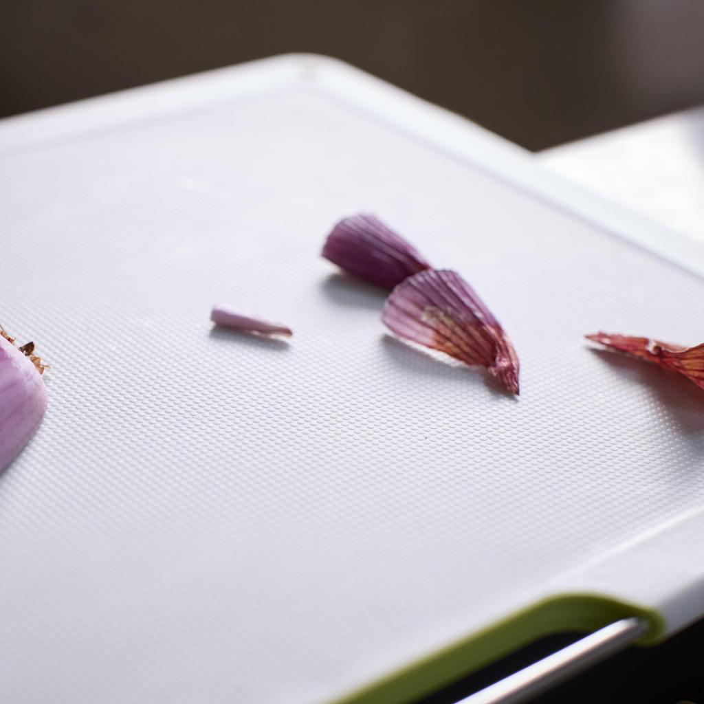 - Protuklizne nožice na dnu daski za rezanje pomažu da daska ostane čvrsto na radnoj površini i povećavaju sigurnost pri radu s nožem.