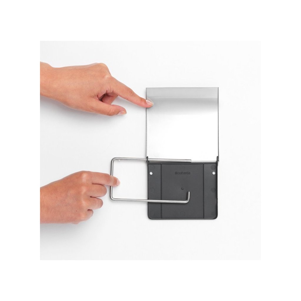 Moderan držač toaletnog papira izrađen od izdržljivog nehrđajućeg čelika. Montaža na zid s 3M trakom ili vijcima - sve uključeno. Držač je prikladan za normalne veličine role. Promišljen dizajn – jednostavno i brzo mijenjanje role toaletnog papira s desne ili lijeve strane. Izrađen od izdržljivih materijala protiv korozije.