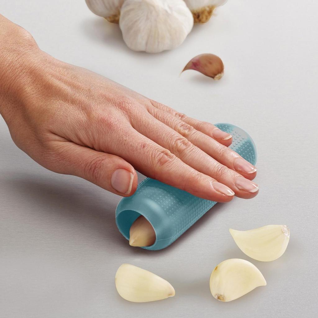 - Joseph Joseph DUO OPAL sjeckalica za češnjak omogućuje brzo i jednostavno uklanjanje kore s režnjeva češnjaka bez upotrebe noža.