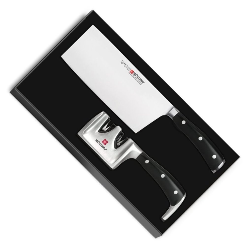 Kineski kuharski nož i oštrač za noževe u setu CLASSIC IKON, 2 kom, Wüsthof