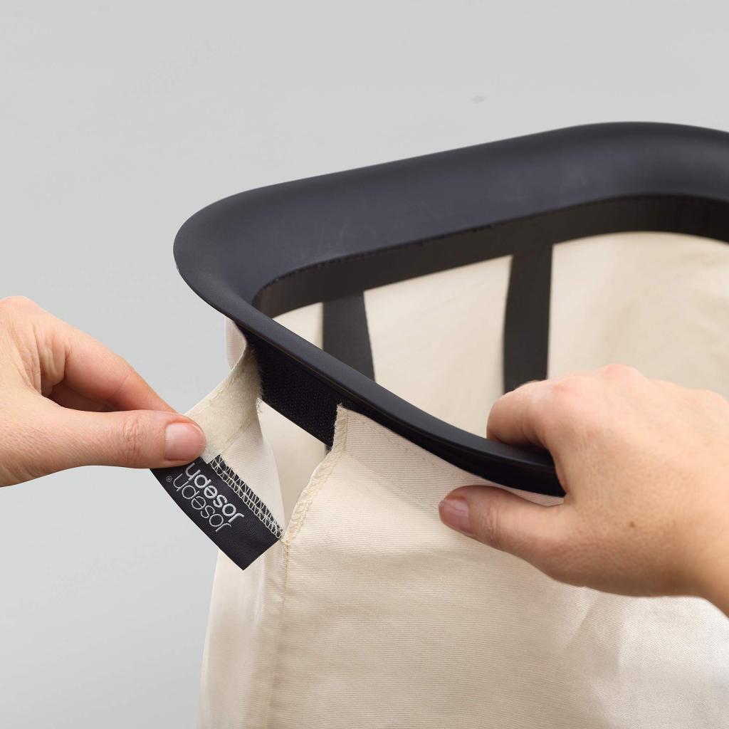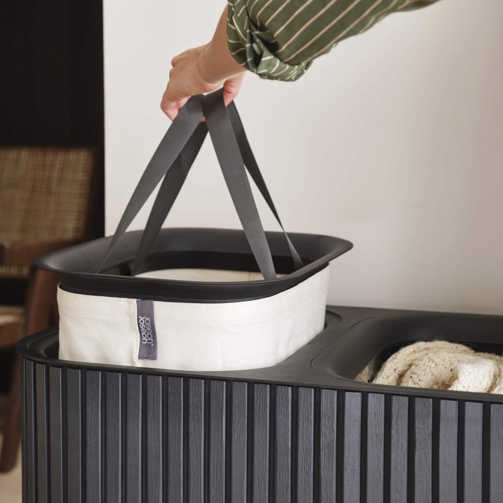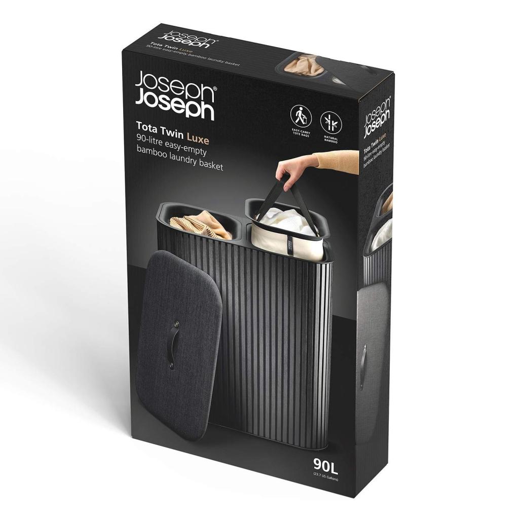 - Korpa za rublje Joseph Joseph TOTA LUXE u crnoj boji elegantno je i praktično rješenje za sortiranje rublja u modernom kućanstvu.