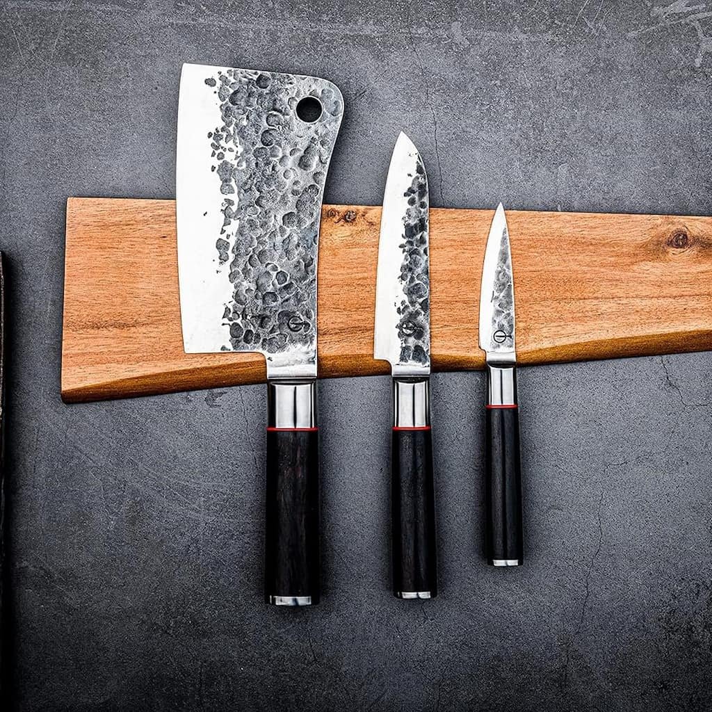- Praktična ušica na vrhu oštrice olakšava vješanje i pohranu u profesionalnim i kućnim kuhinjama