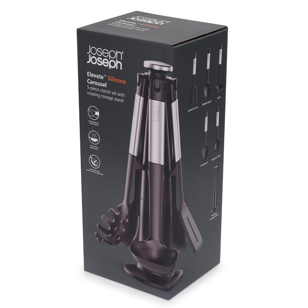 - Set kuhinjskog pribora Joseph Joseph ELEVATE praktično je rješenje za svakodnevno kuhanje jer nudi pet bitnih alata pohranjenih u rotirajućem stalku za jednostavan pristup.