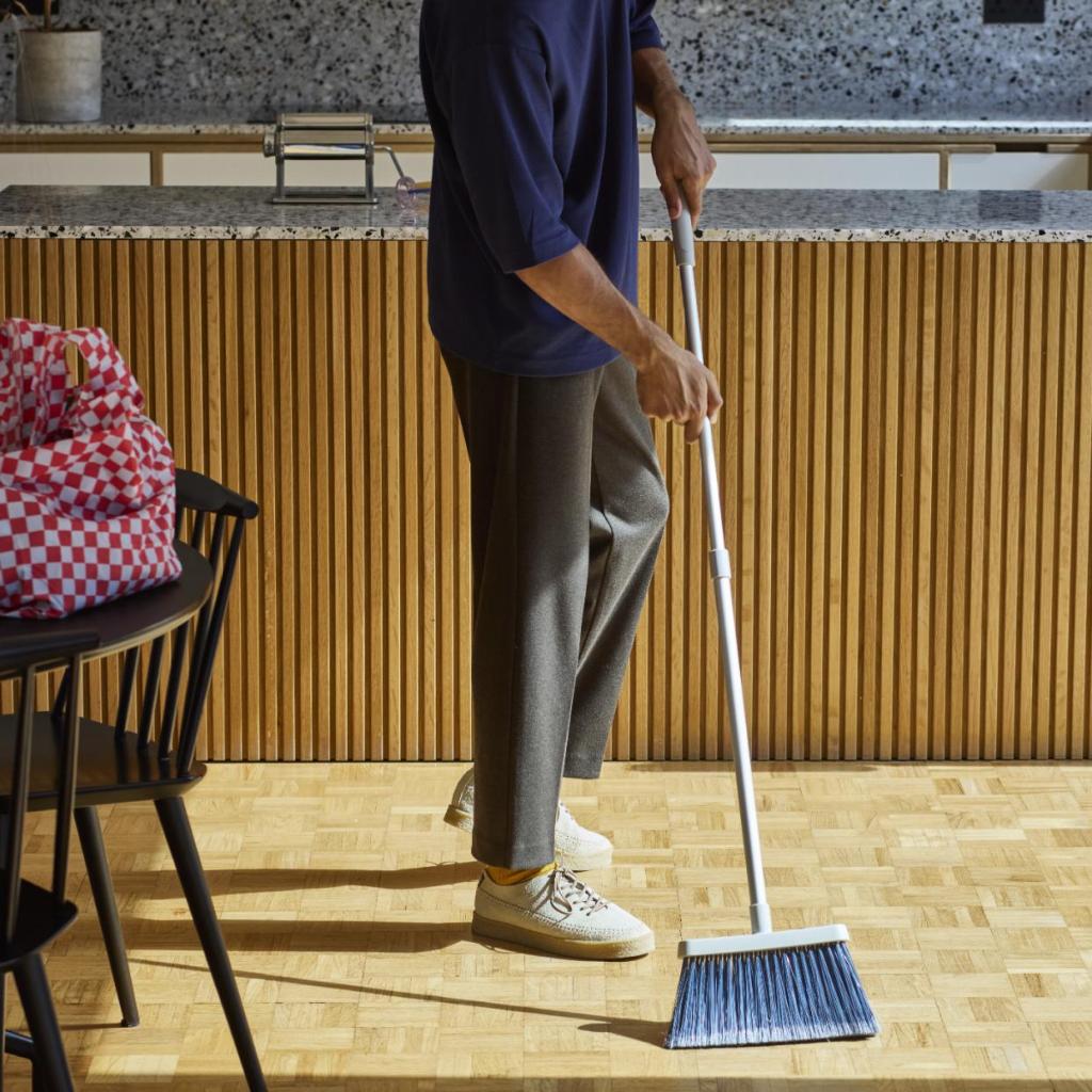 - Gusto raspoređene čekinje osiguravaju učinkovito metenje na različitim vrstama površina, kao što su pločice, vinil, laminat ili drveni podovi.
