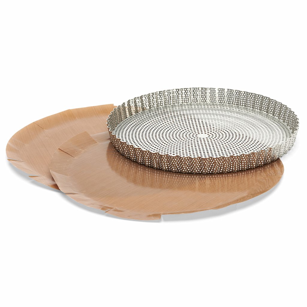 - Dolazi s neprianjajućom podlogom za pečenje, precizno izrezanom prema obliku kalupa, što olakšava rukovanje i povećava učinkovitost rada.