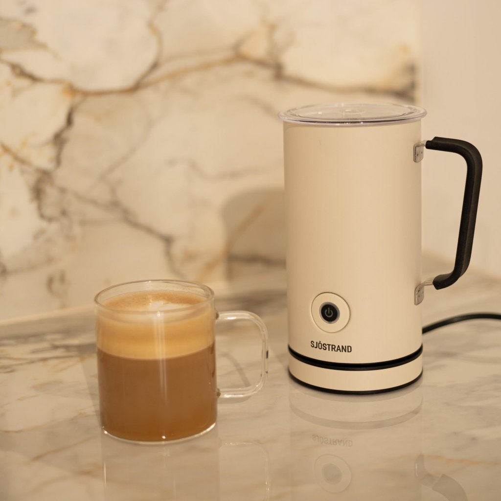 - Pjenilica za mlijeko Sjöstrand omogućuje vam da u samo nekoliko sekundi dočarate savršeno glatku i pahuljastu pjenu, bilo da pripremate cappuccino, latte, macchiato ili vruću čokoladu.