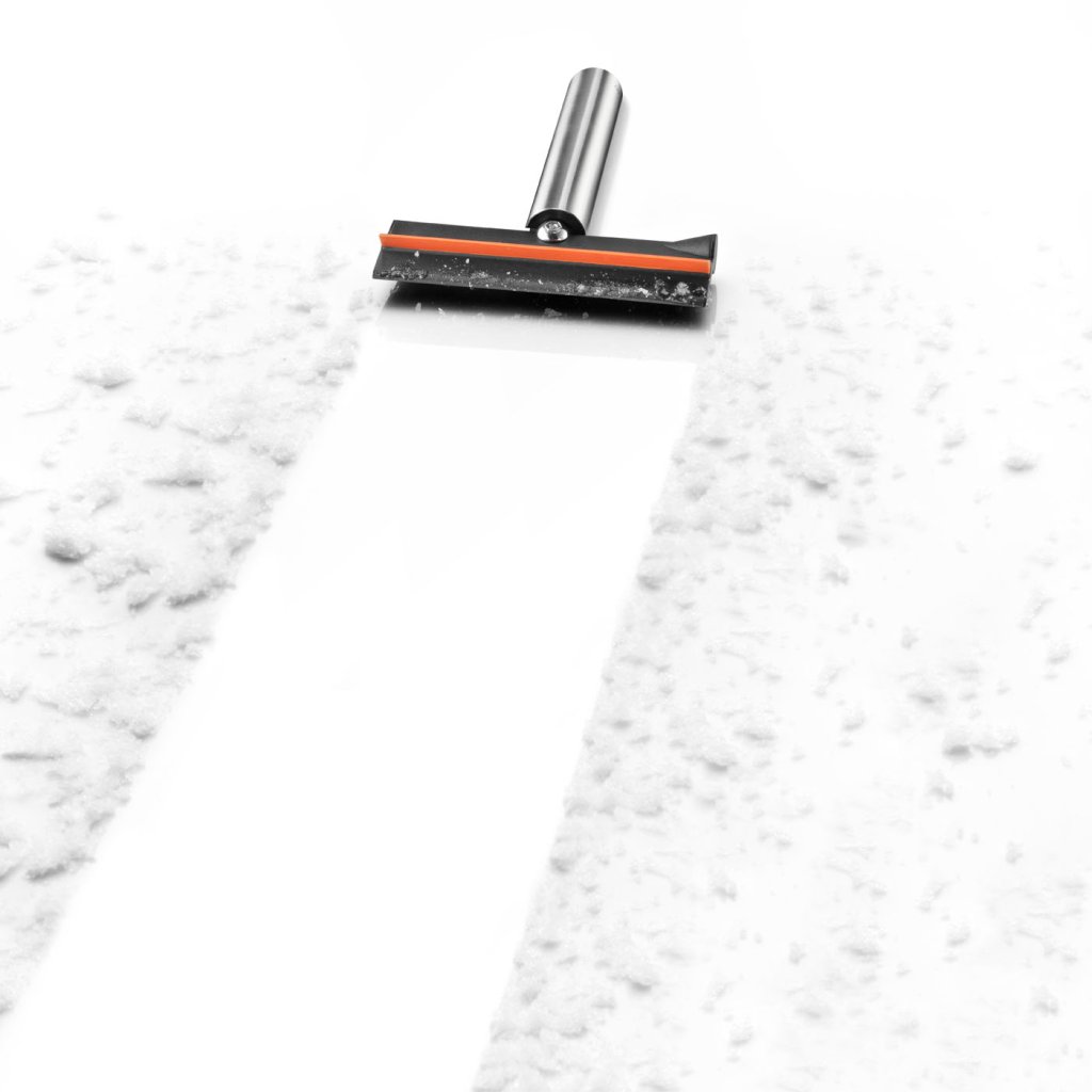 - Ručka od nehrđajućeg čelika duljina 12,1cm, širina 2,3cm; širina plastične oštrice strugača 12 cm
