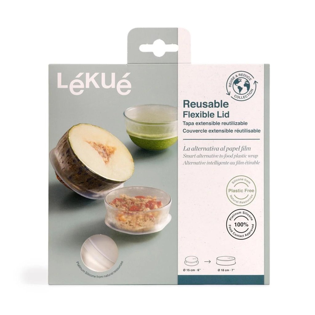 - Ovaj višekratni silikonski poklopac Lékué promjera 15 cm koristi se za čuvanje hrane kao praktična zamjena za jednokratnu ambalažu.