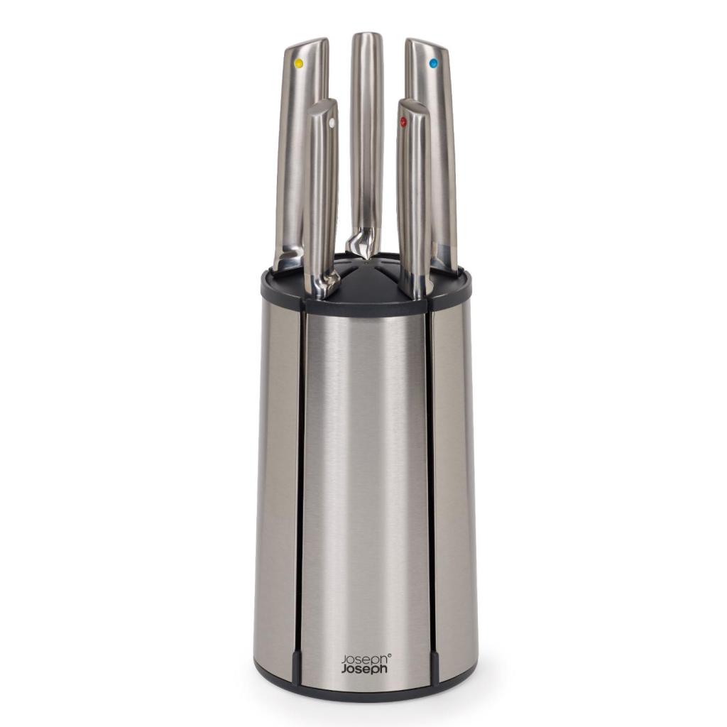 - Joseph Joseph ELEVATE STEEL set kuhinjskih noževa s rotirajućim stalkom predstavlja cjelovito rješenje za svakodnevnu pripremu namirnica, pri čemu su svi važni noževi pregledno posloženi i odmah dostupni tijekom kuhanja.