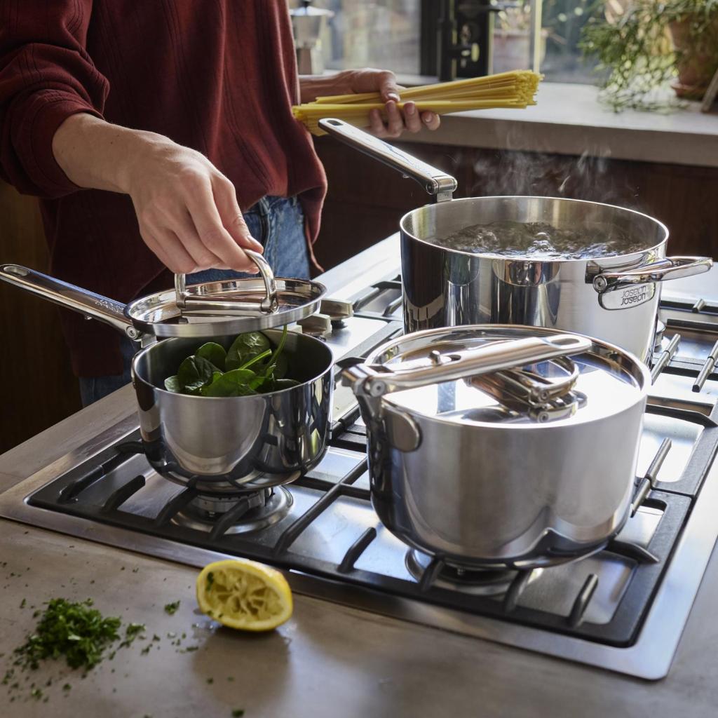 - Vrhunski set posuđa Joseph Joseph SPACE transformira organizaciju kuhinje zahvaljujući sofisticiranom sustavu slaganja i profesionalnoj troslojnoj konstrukciji.