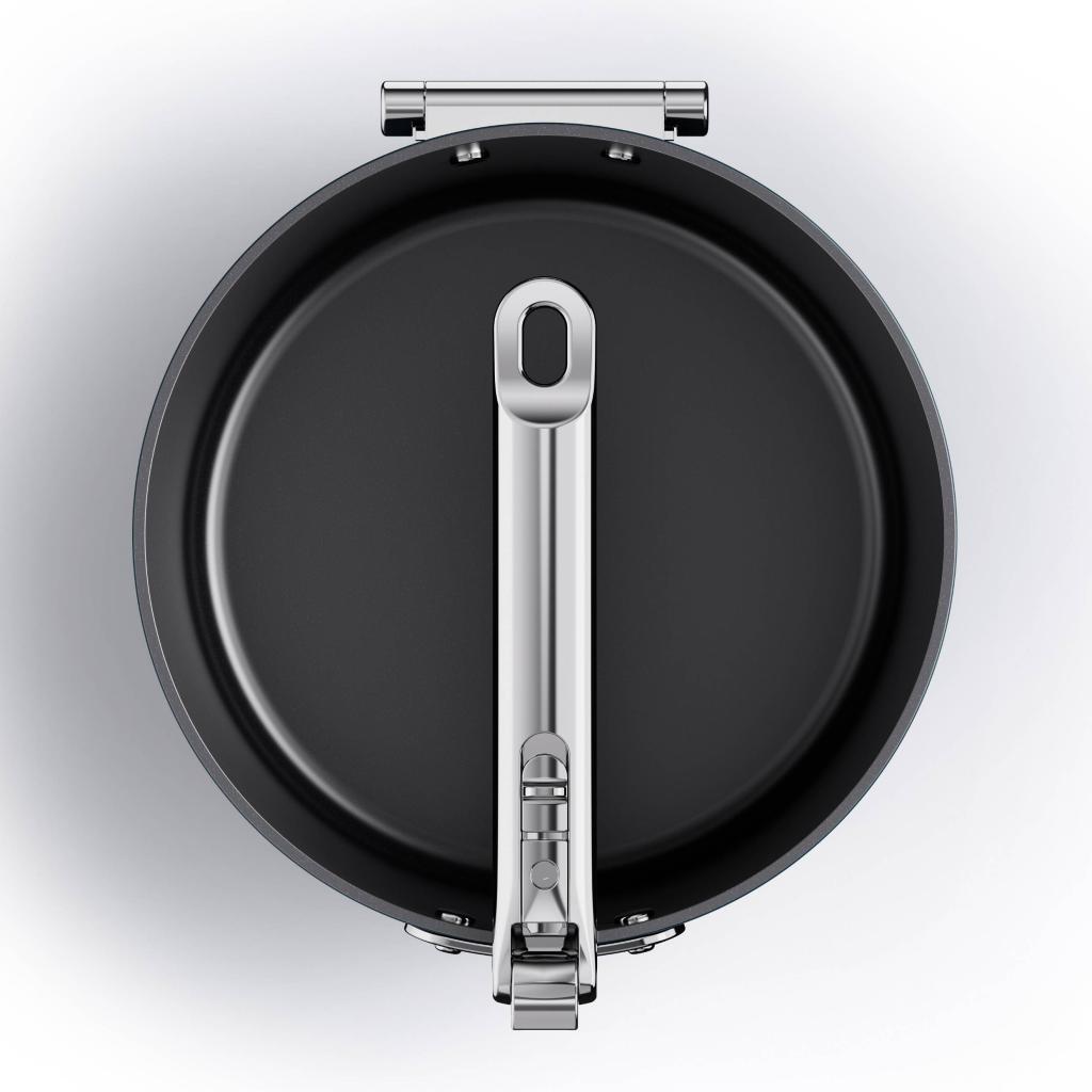 - Zahvaljujući sklopivim ručkama, lonci se mogu lako slagati, štedeći do 50% više prostora za pohranu u usporedbi s konvencionalnim posuđem.