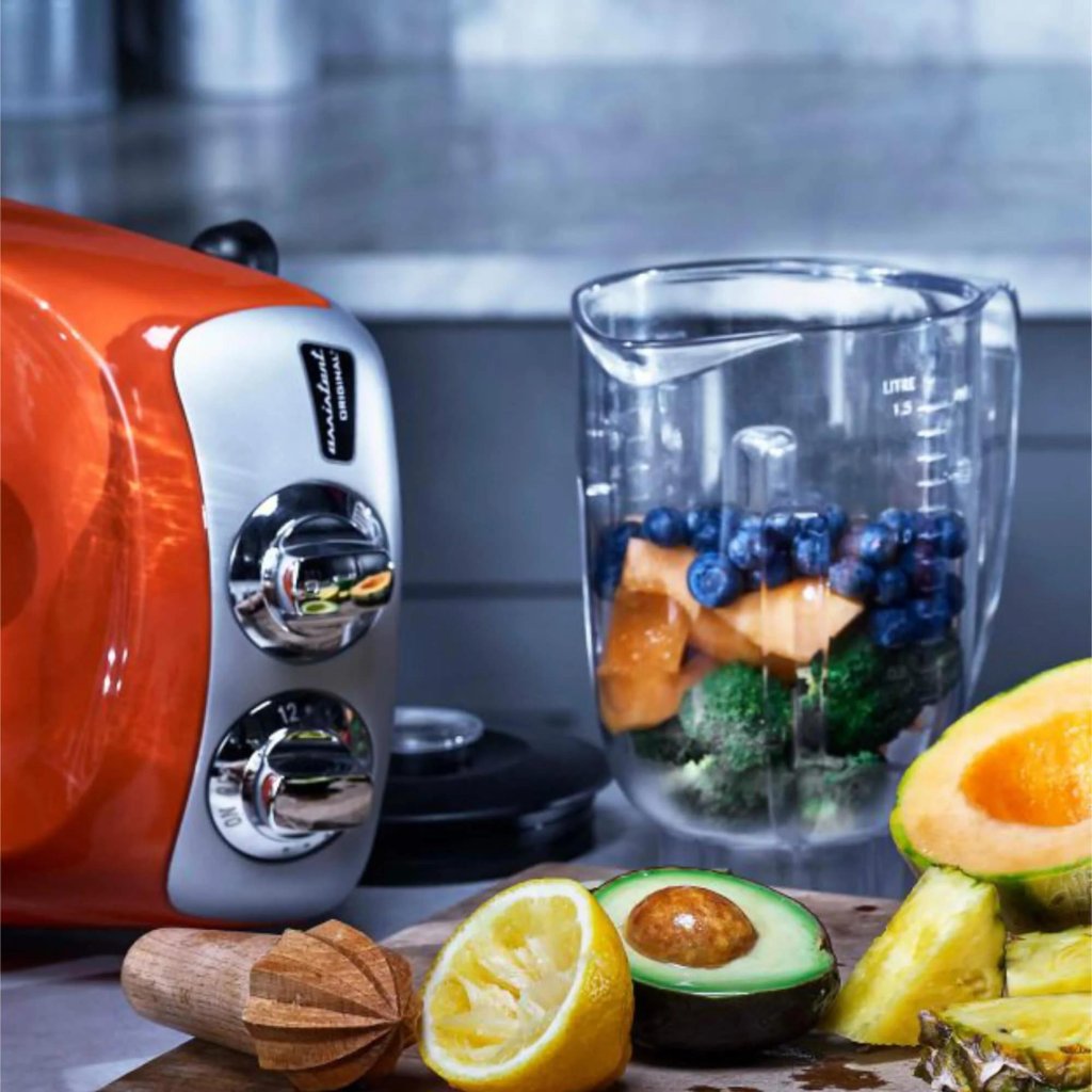 Nastavak za blender BEZ BPA s "tupim" dizajnom oštrica idealan je za umake, smoothieje, milkshakeove te također za mljevenje malih količina žitarica ili začinskog bilja. Mali poklopac koji se može skinuti omogućuje vam dodavanje sastojaka tijekom procesa miješanja. S snažnim motorom od 600 W Ankarsrum zajedno s ovim jednostavnim dodatkom dobivate izvrsnog pomoćnika za svoju kuhinju.