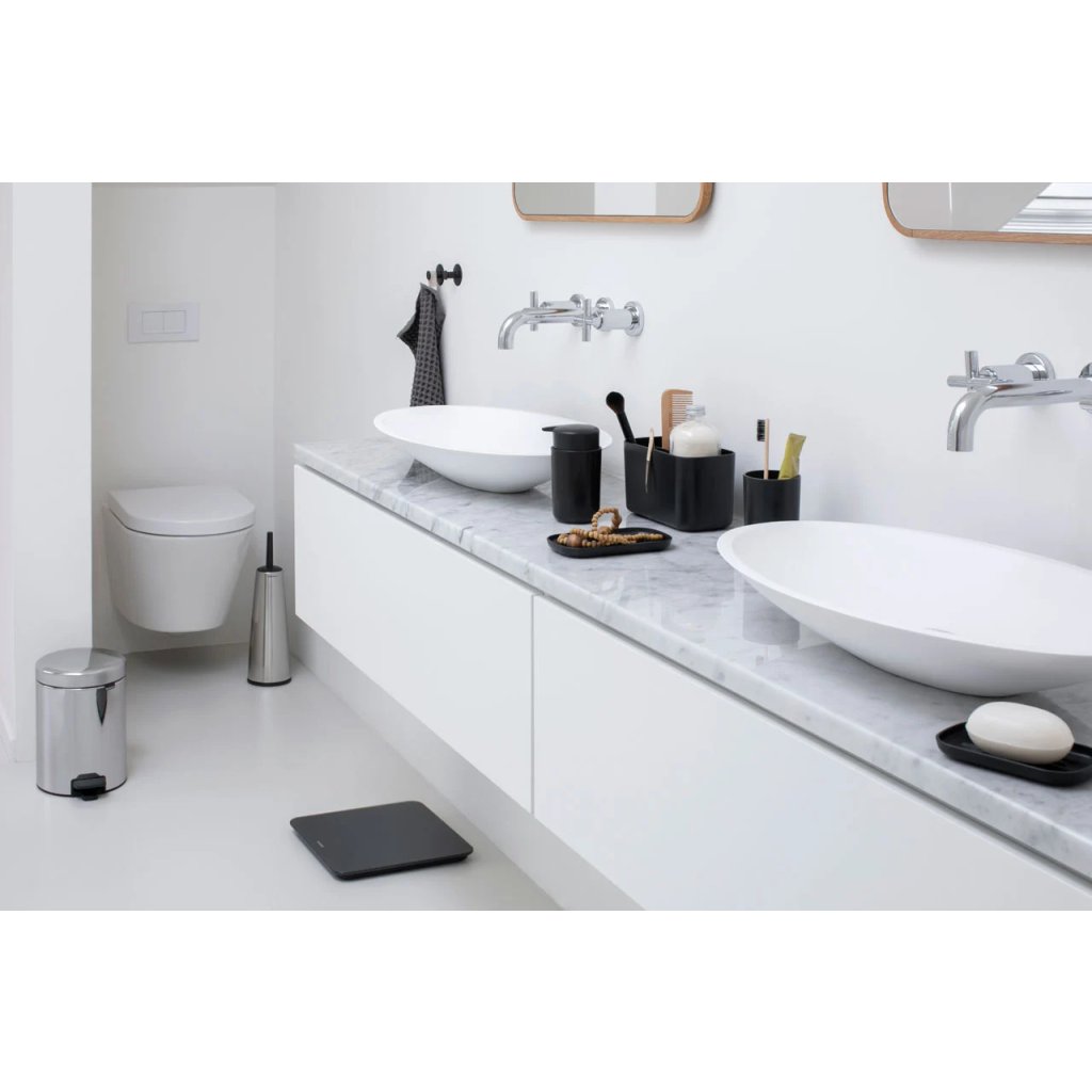 Set toaletnog pribora započinje snažnom i higijenskom WC četkom i držačem. Slijedi minimalistički držač toaletnog papirakoji štiti toaletni papir od prašine i olakšava izvlačenje papira iz role, a posljednji u kompletu je držač toaletnog papira, koji diskretno drži do tri role. Sve što vam je potrebno za opremanje vašeg toaleta.