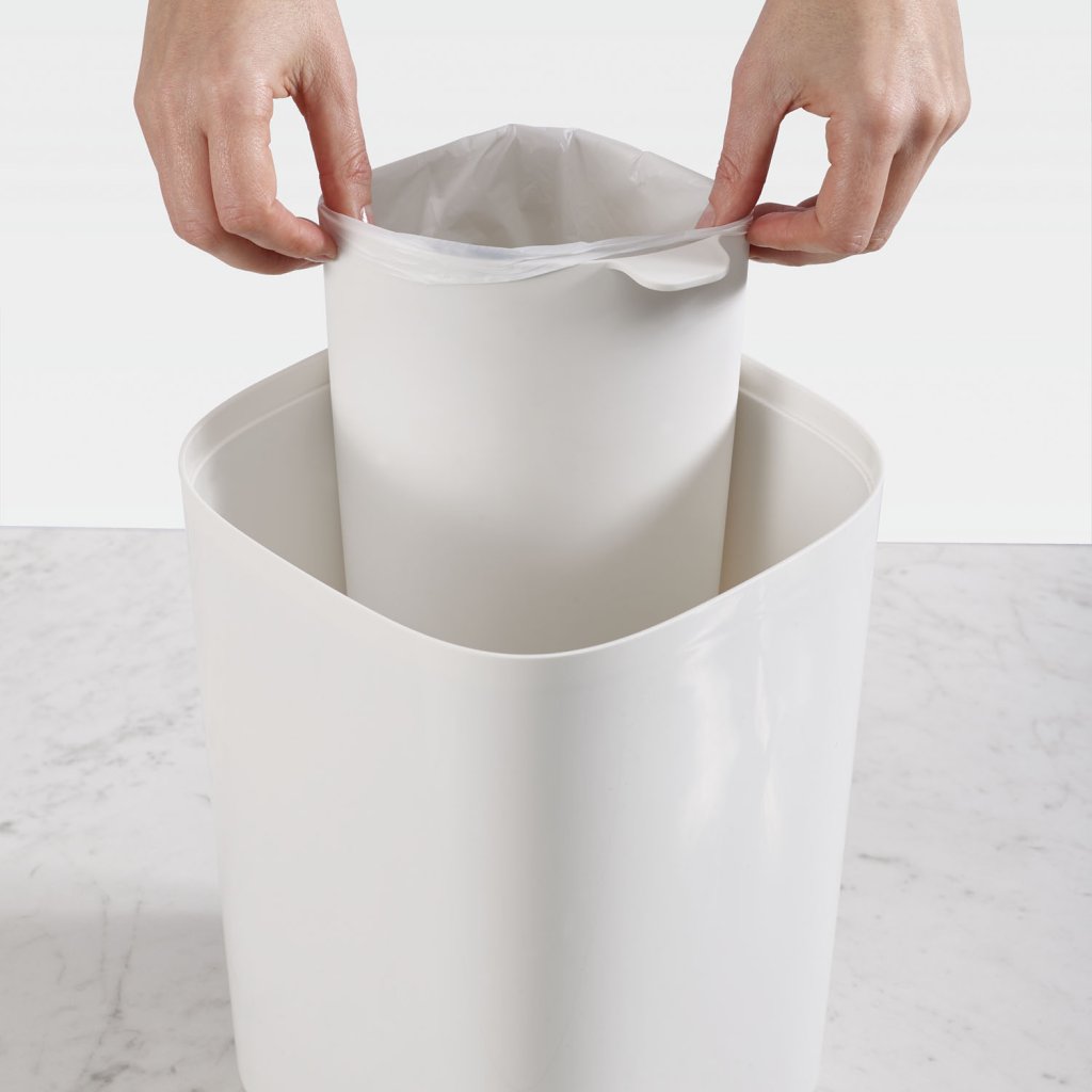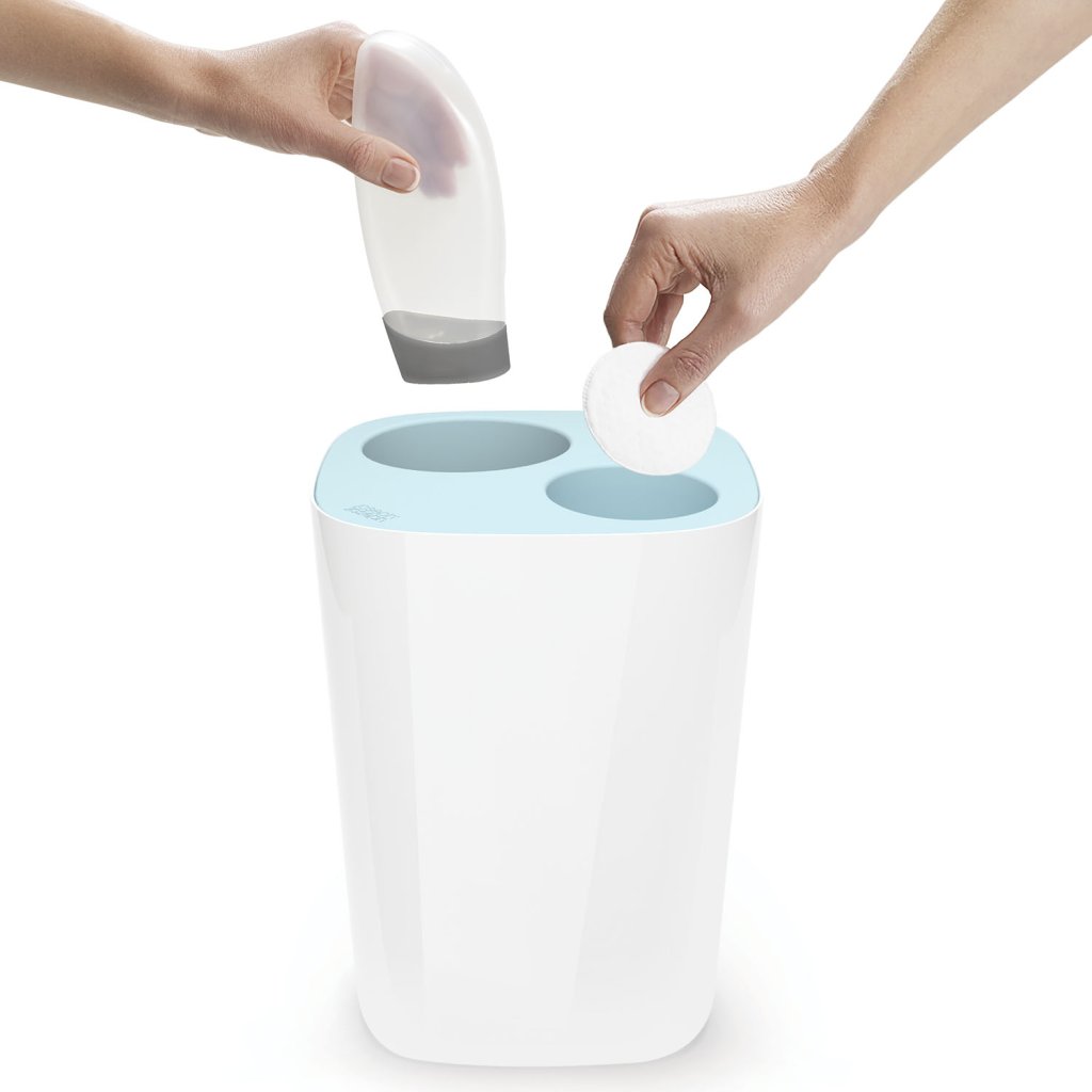 Recikliranje se često zaboravlja u kupaonici. Joseph Joseph stoga je odlučio to popraviti. Razdjelna košara za otpad opremljena je manjim spremnikom za konvencionalni otpad i većim spremnikom za razvrstani otpad. Zapremina glavne košare je 8 l.