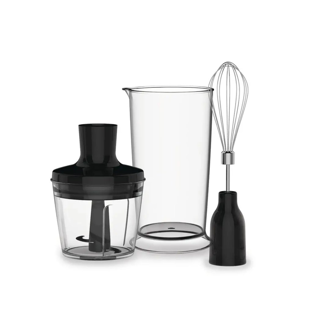 Sigurno ćete cijeniti zaštitu od prskanja i mekanu ergonomsku ručku koja ne klizi čak ni tijekom dugotrajnog miješanja ili mokrih ruku. U paketu s mikserom nalazi se i posuda za mjerenje zapremine 800 ml, sjeckalica za jednostavno usitnjavanje i mljevenje raznih sastojaka te pjenjača za jednostavno mućenje.