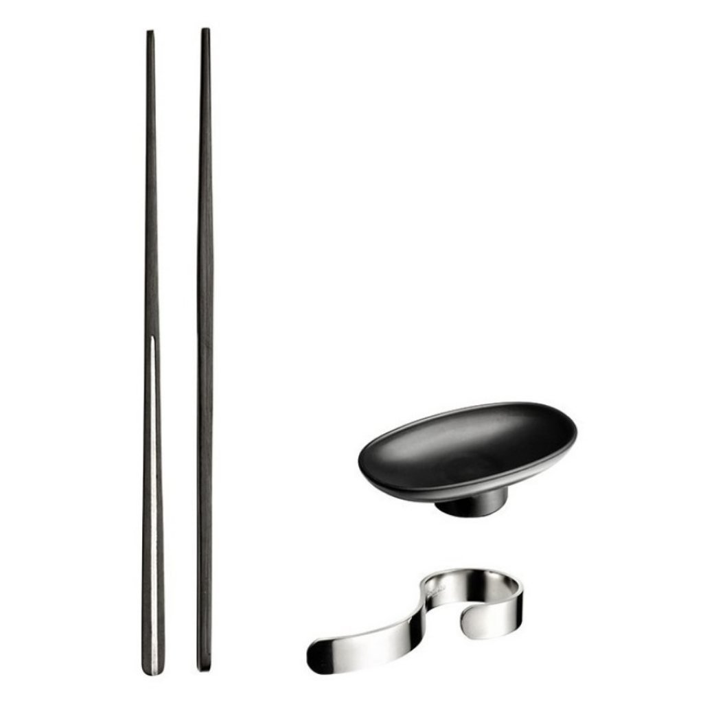 - Set uključuje štapiće za jelo, zdjelice i stalke koji kombiniraju funkcionalnost i profinjen dizajn inspiriran istočnjačkom estetikom.