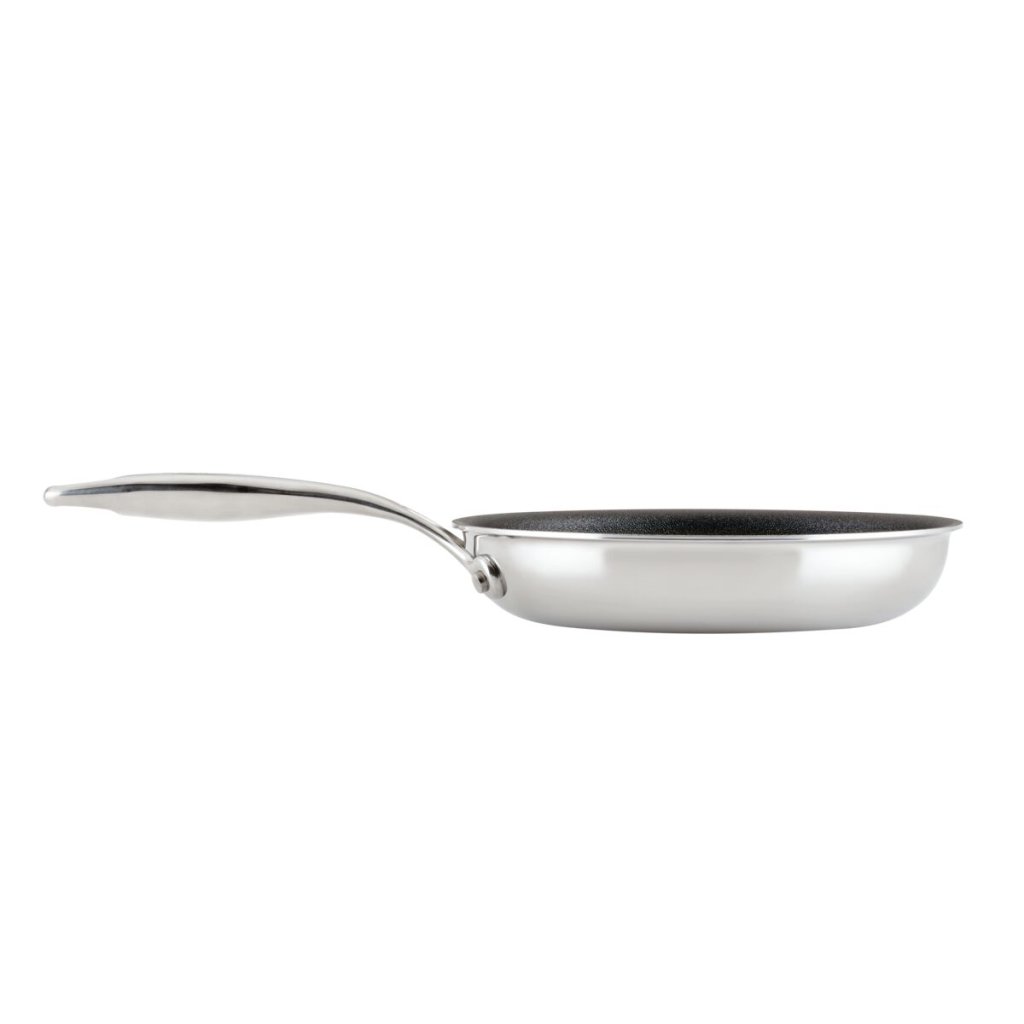 - Robusna konstrukcija tave koristi snažnu aluminijsku jezgru za iznimnu raspodjelu topline i visoko polirani vanjski sloj od nehrđajućeg čelika za vrhunski izgled i performanse.