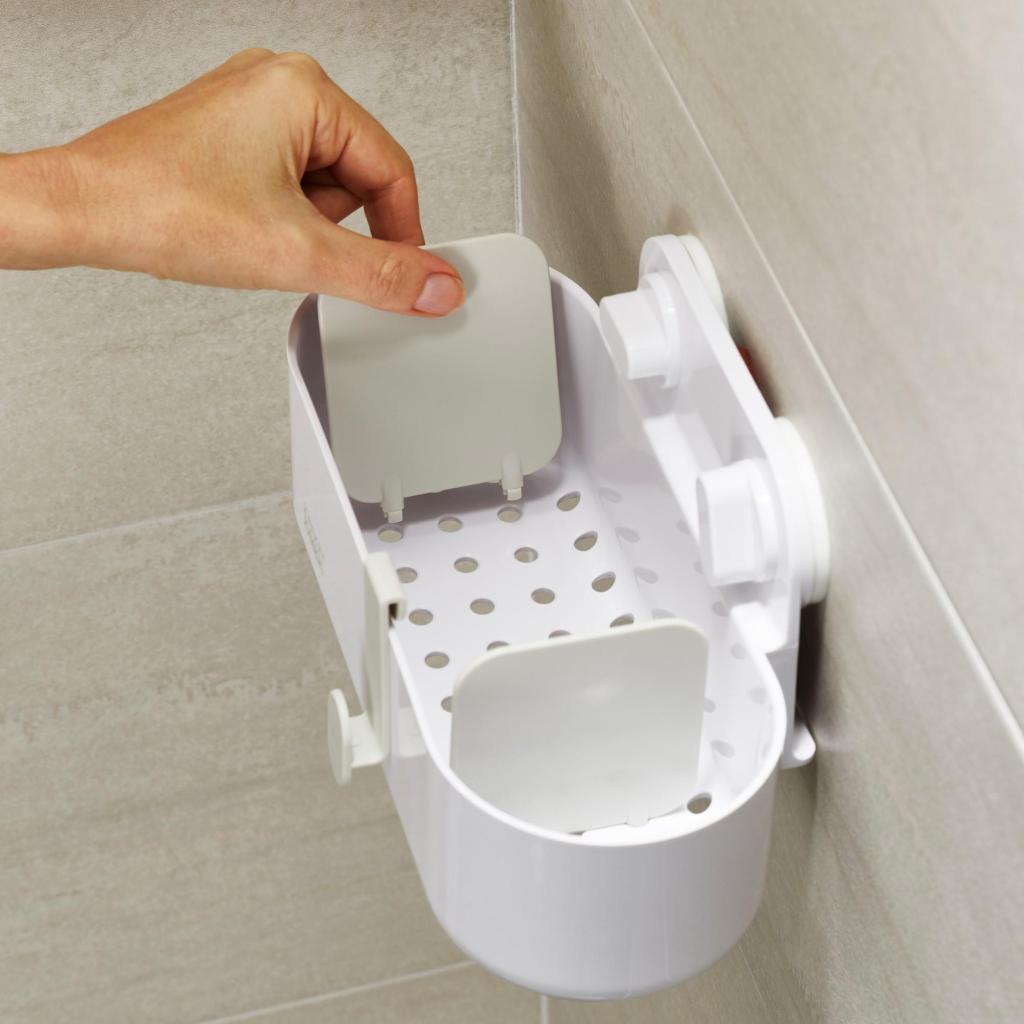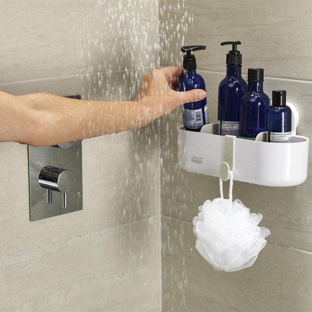 - Tuš polica Joseph Joseph DUO nudi praktično rješenje za pregledno spremanje sapuna, šampona i gela za tuširanje izravno u prostoru tuš kabine.