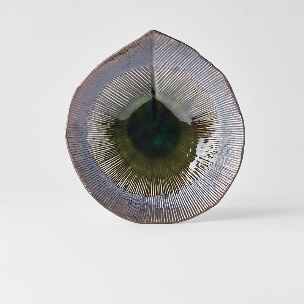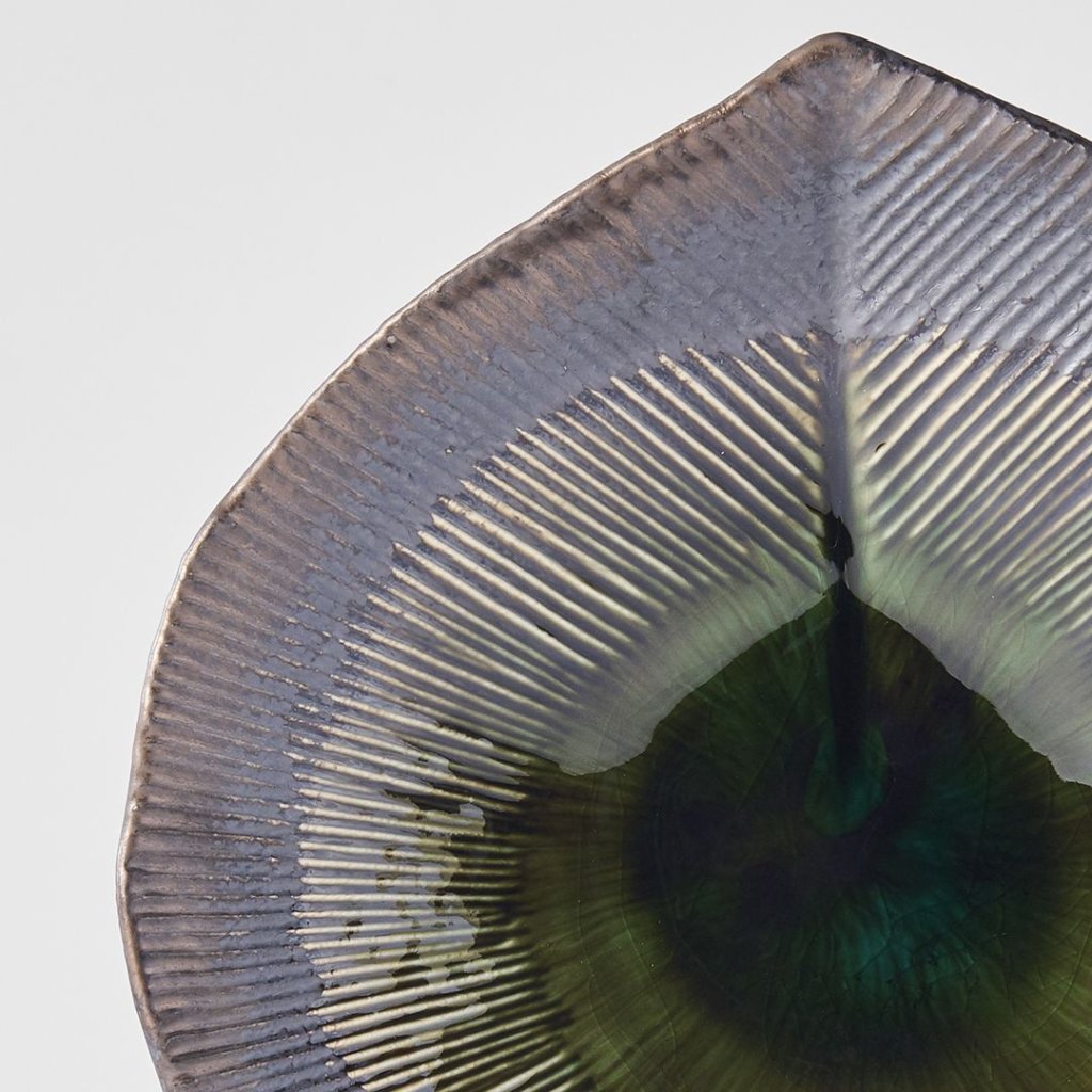 - Oblik lista i glatko miješanje glazura stvaraju prepoznatljivu estetiku koja potiče kreativno prekrivanje i ističe svaki detalj jela koje se poslužuje.